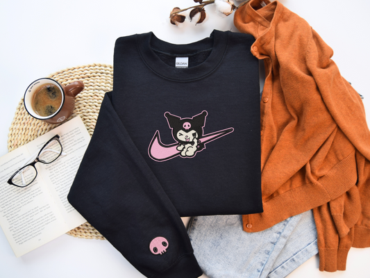 Kuromi Swoosh Embroidered Sweatshirt – Cute Gothic Anime Custom Sweatshirt